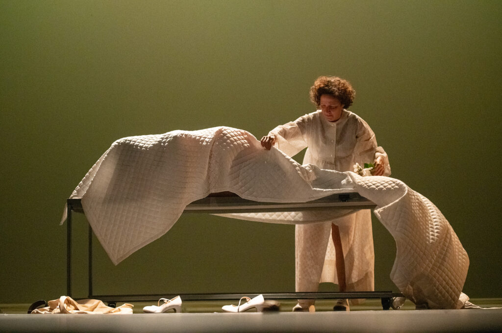 Hay un brote psicótico de la protagonista que se convierte en un momento viral, con una pluralidad de voces tildando a Teresa de “loca” sin siquiera conocerla o tener un interés de entender la razón por la que se expresa de esta manera, mostrando el individualismo y la enajenación del boricua al caos que le rodea. El diseño escenográfico minimalista funciona muy bien y el diseño de sonido evoca tanto la tranquilidad marítima como el abrumador caos y pluralidad de voces en redes sociales. La obra triunfa como pieza teatral vanguardista en la forma que integra la historia del país con la deconstrucción del psiquis de Teresa.