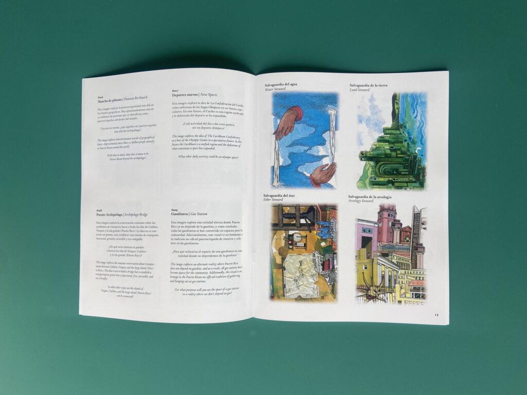 Images for Decolonial Futures propone un “organismo vivo” de imágenes que crece con cada mirada, invitando a desaprender los imaginarios coloniales que todavía habitan nuestras escuelas y sentidos. En esta primera parte de la serie, Juan Carlos y Claudia Alejandra de Images for Decolonial Futures exploran cómo el arte, el diseño y la educación pueden abrir espacios de reflexión sobre la descolonización más allá del discurso político. Elles reinventan los cuadernos de láminas para crear imágenes que inspiran a imaginar otros futuros posibles para Puerto Rico.