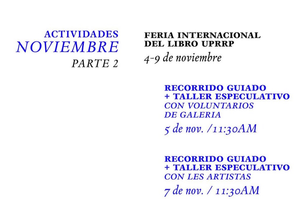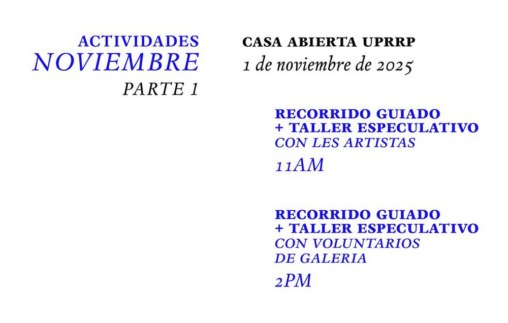 Juan Carlos – Images for Decolonial Futures: Vamos a ofrecer un recorrido guiado, además de una serie de lectures y talleres. Memoria Decolonial va a realizar un panel como parte de la exposición, enfocado en los mapas como herramientas descoloniales. Todo será en la Galería Francisco Oller, que forma parte del Departamento de Historia del Arte.